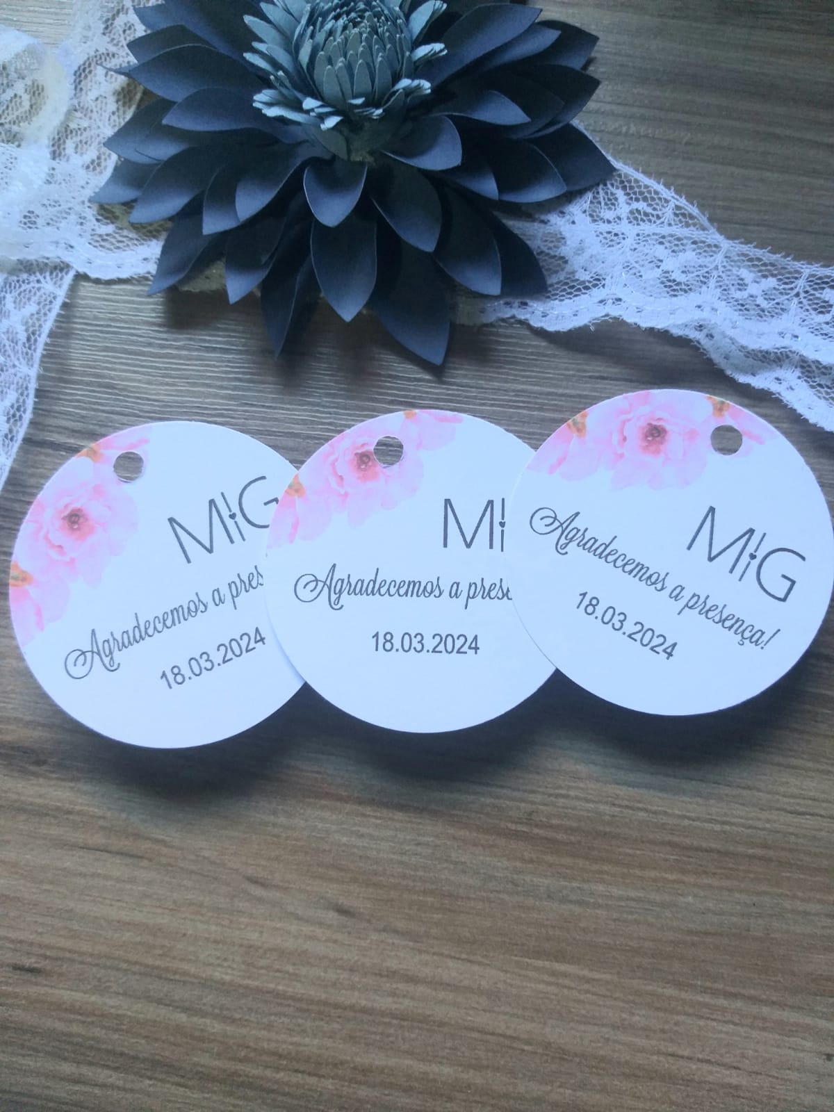 Impressão de Tags em papel fosco offset 180g (não é a prova d'agua e não comestível), com pedido de Montagem de arte e com furo 5mm ou 3mm para amarração (não segue com fita ou fitilho ou cordão).